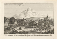 Poco dopo il disastro Johann Jakob Aschmannne rappresenta le catastrofiche conseguenze in una serie di acquetinte. Il pittore e incisore di Thalwil è costretto a ricostruire graficamente l’aspetto originario del villaggio, dato che non esistevano illustrazioni di Küsnacht visto dal suo interno.