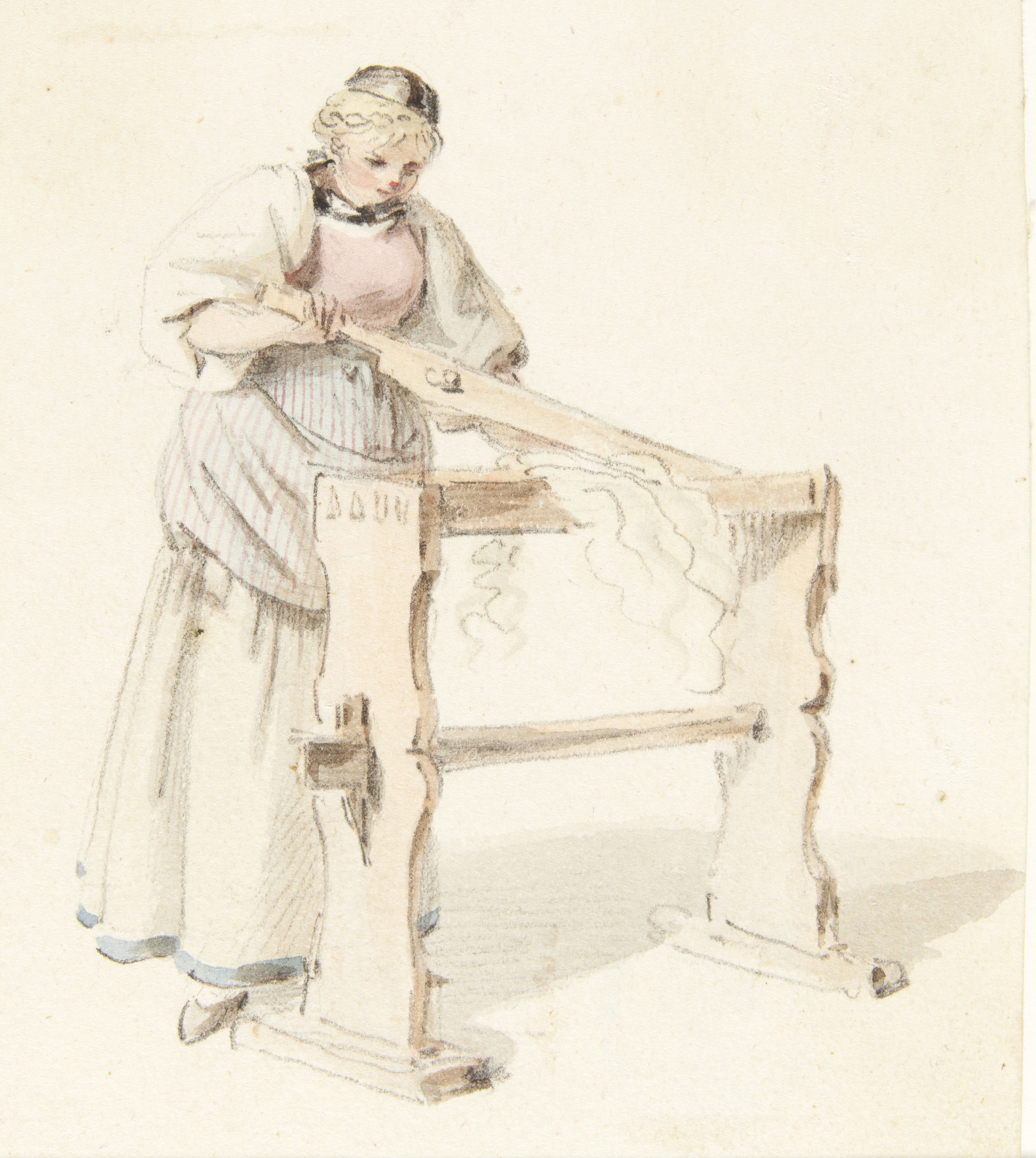 F.N. König, Donna dell'Oberhasli intenta a gramolare, acquerello, 1765 - 1832